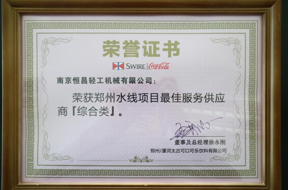 南京恒昌包裝作為后段整包商,在鄭州太古可口可樂48000bph水線項目中獲得“最佳服務供應商”殊榮!